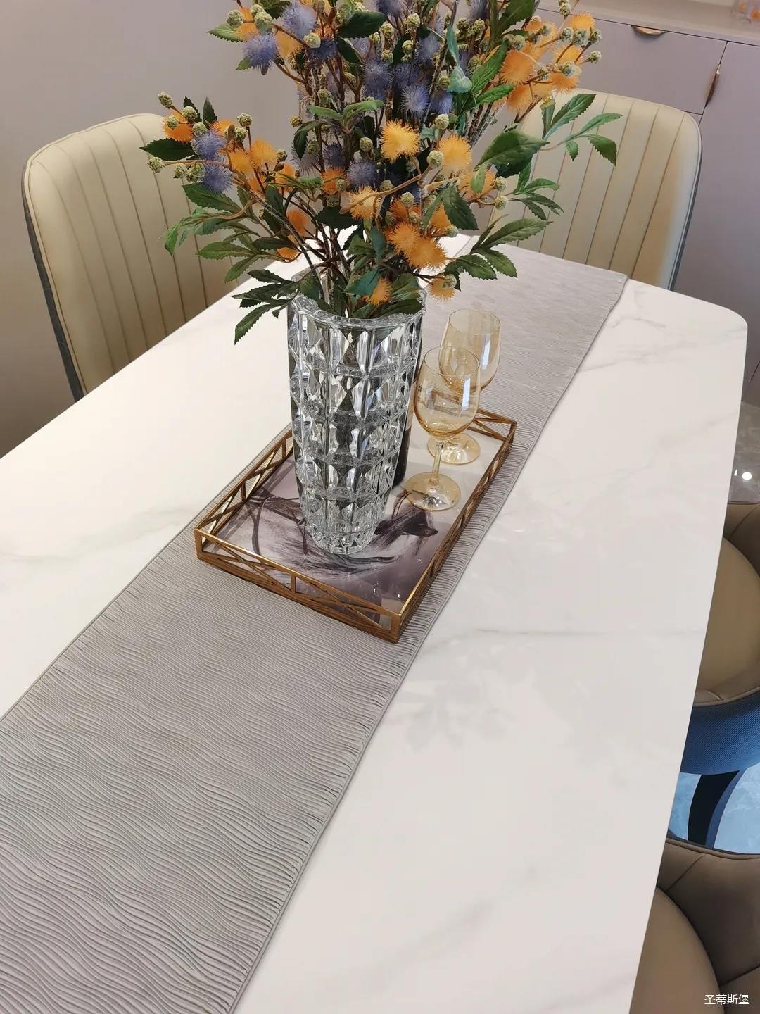 餐桌上的绿植点缀,随意摆放的精致杯盏,将自由随性的用餐空间就此拉开。