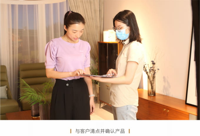 耐心解答客户提出的关于家具保养的提问,同时将米兰·(milan)中国官方网站产品使用说明书送给客户,尔后教客户如何扫描产品二维码进行防伪鉴定,请顾客对货物进行验收检查,然后正式签收《产品配送单》。